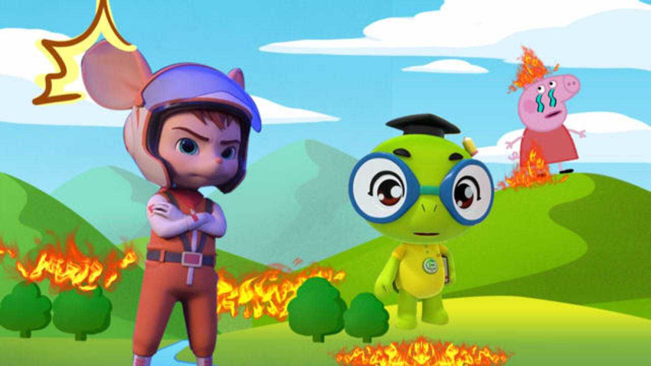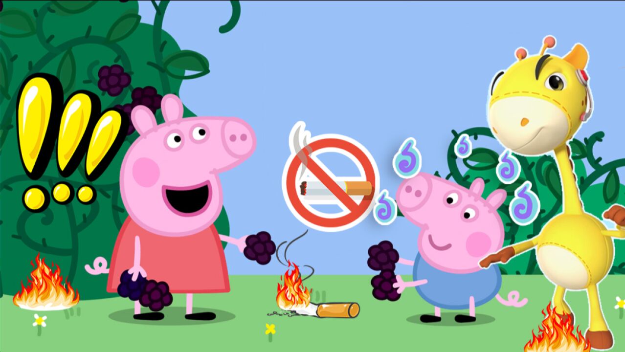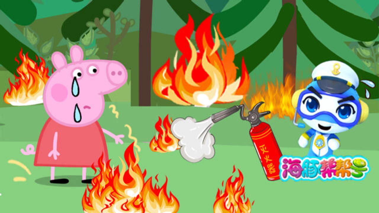森林消防员佩奇和海豚帮帮号柯蓝波为小朋友们讲解,火灾现场错误演示。