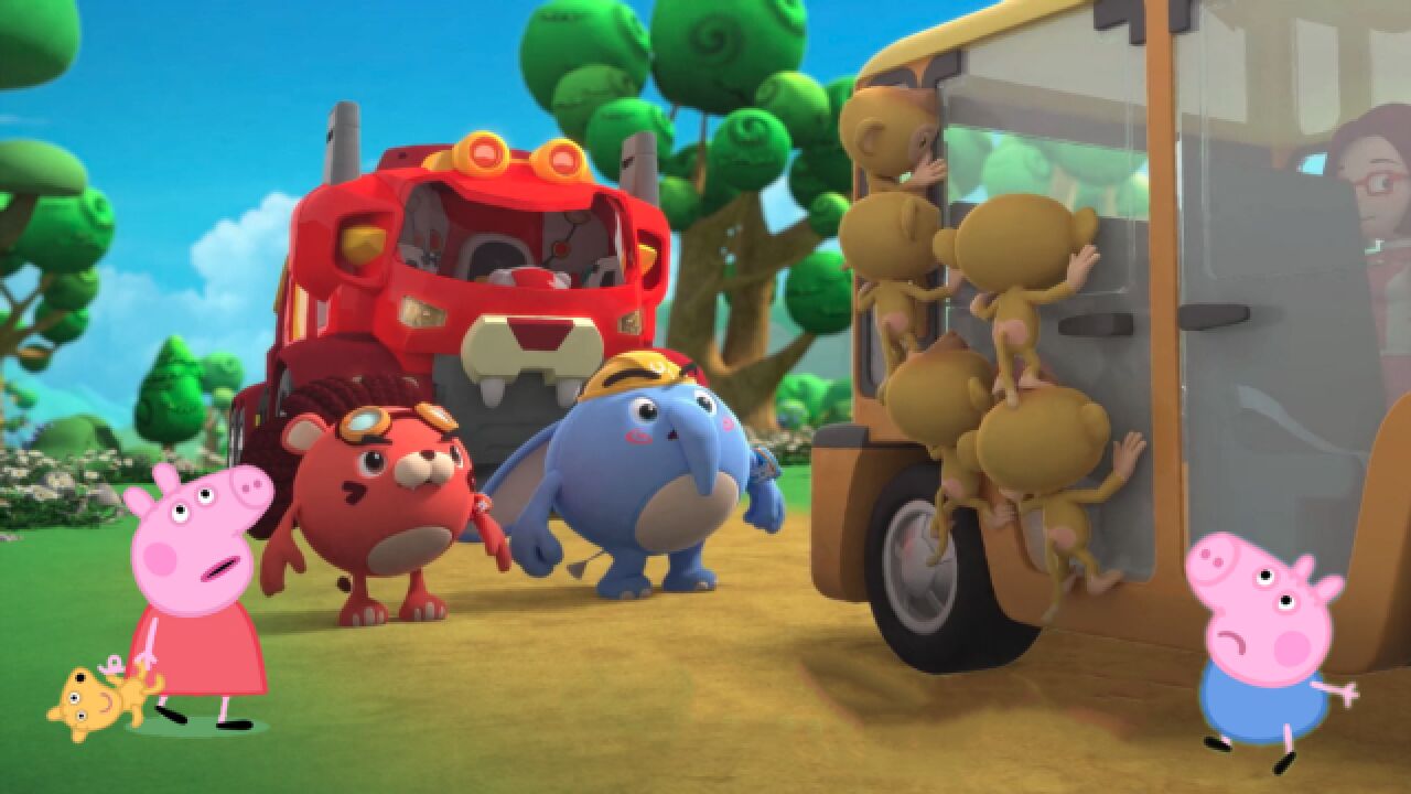 小猪佩奇一家被调皮的猴子袭击,逗逗鹰和蒙蒙象紧急来救援!