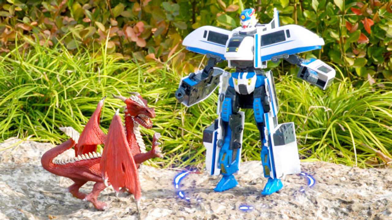 列车超人打败喷火龙,拯救大自然,儿童益智变形火车玩具试玩