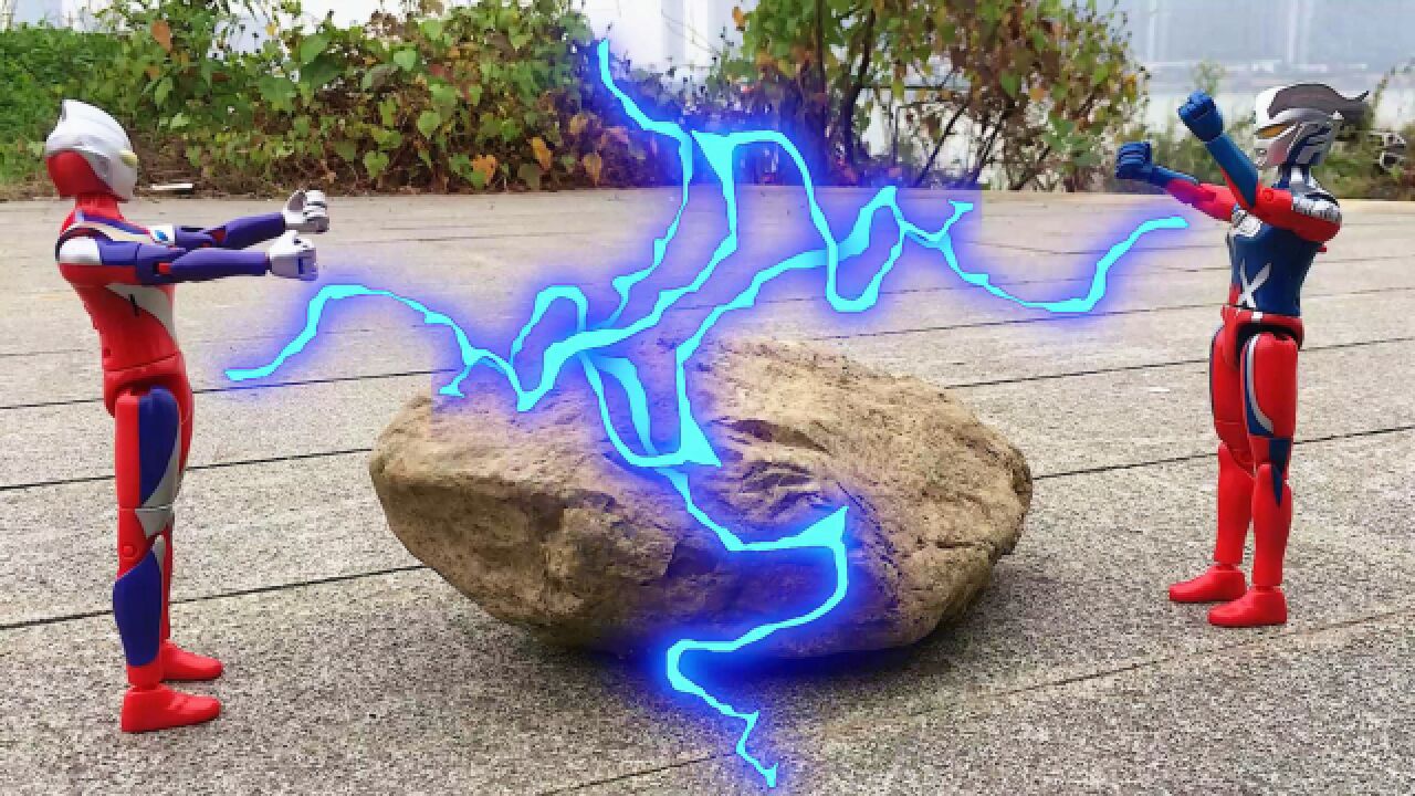 迪迦和赛罗奥特曼拯救被贝利亚变成大石头的戴拿奥特曼