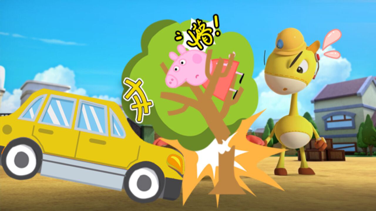 佩奇偷开汽车出事故,撞翻车子受了伤,救援宝贝快速救援!
