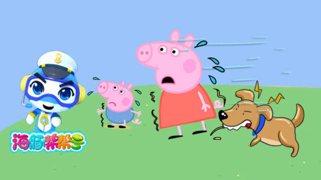 佩奇、乔治惊险的一天,出门遇到狗狗追,两人开启奔跑模式!
