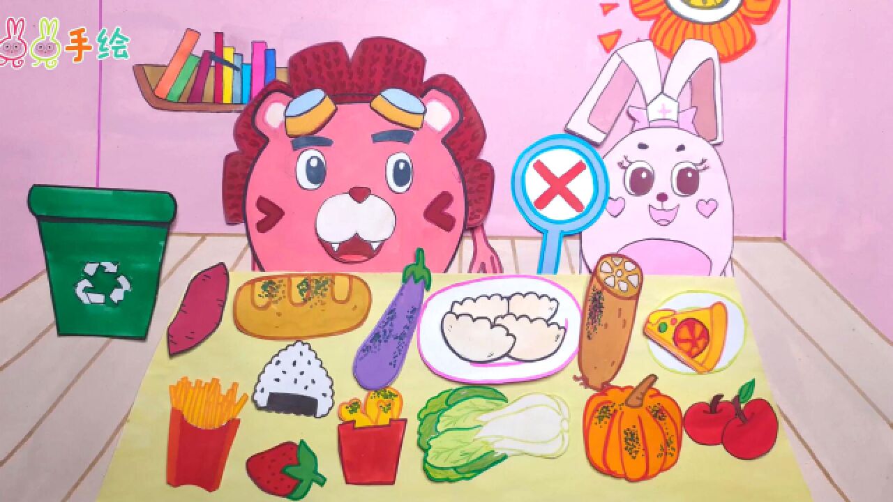 手绘定格动画:蒙蒙象和恬恬兔一起吃早餐,猜猜都有哪些食物不能吃呢?