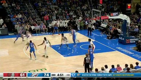 【集锦】开拓者89-107雷霆 雷霆主力缺阵仍擒开拓者迎6连胜