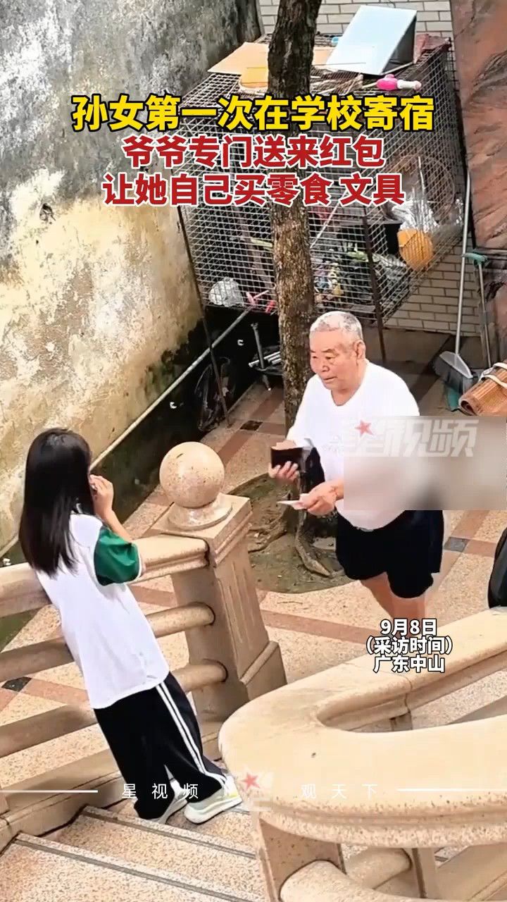孙女第一次去学校寄宿,爷爷特意来送开学红包,让孩子买零食文具